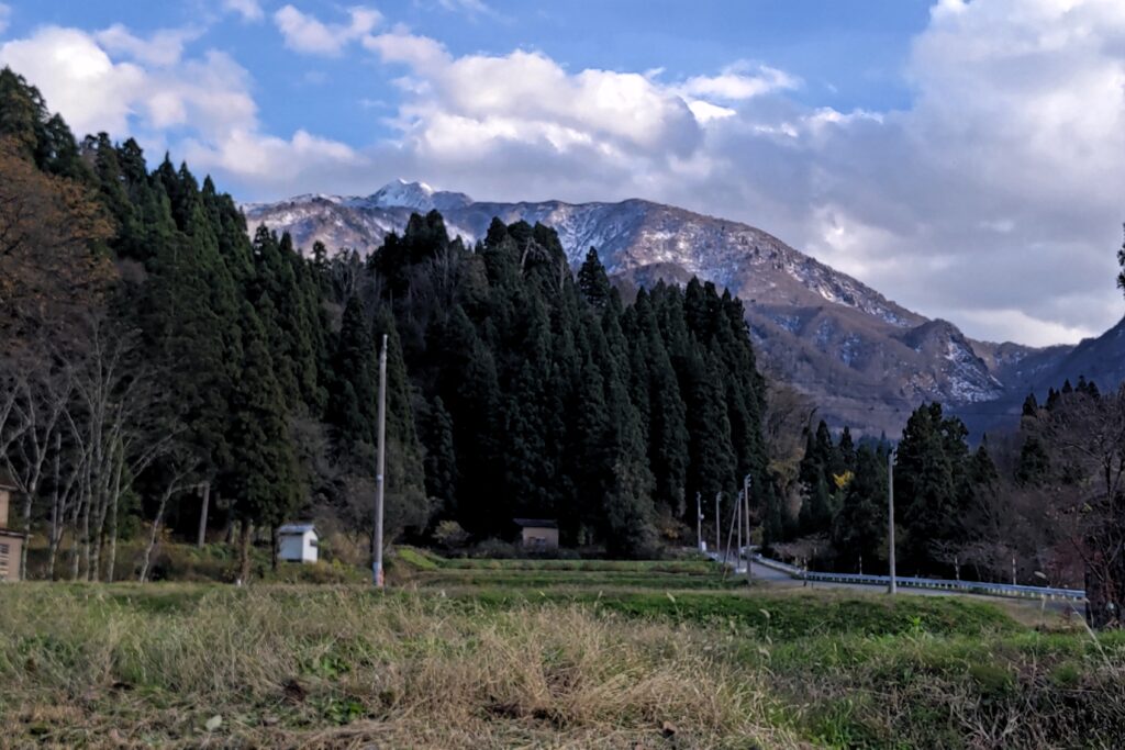 すぐ近くの山まで雪を被っています。